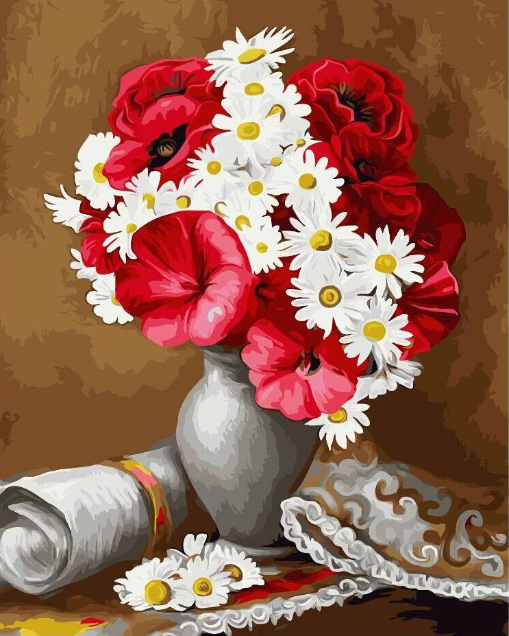 Набор для рисования картины по номерам Букет маков и ромашек, арт. BK-GX22036, 40х50см. ***НАЛИЧИЕ УТОЧНЯЙТЕ***
