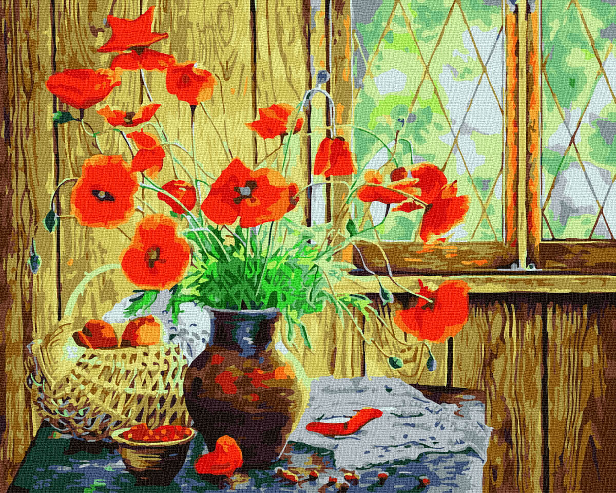 Набор для рисования картины по номерам Букет маков на террасе, арт. BK-GX34636, 40х50см. ***НАЛИЧИЕ УТОЧНЯЙТЕ***