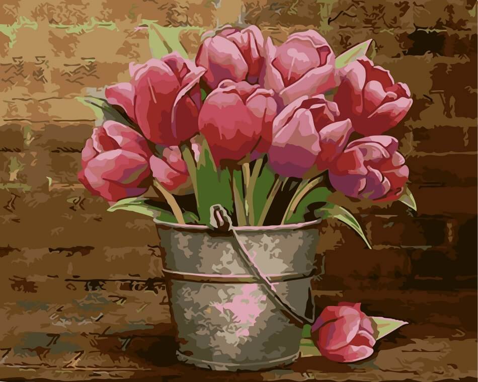 Набор для рисования картины по номерам Букет розовых тюльпанов, арт. AS0009, 40х50см. ***НАЛИЧИЕ УТОЧНЯЙТЕ***