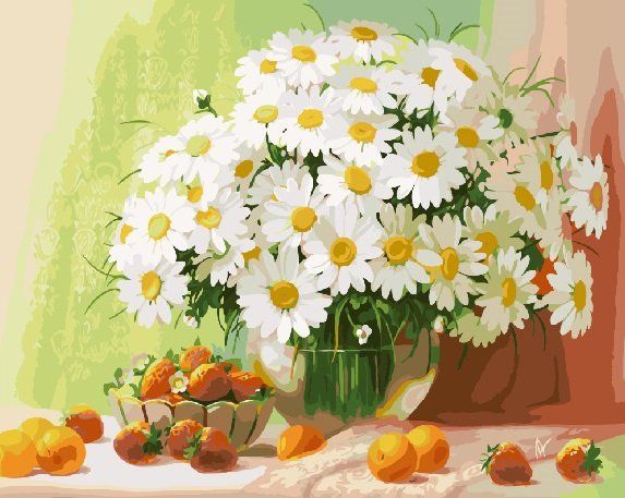 Набор для рисования Букет ромашек, арт. BK-GX9222 (Rainbow Art) содержит: прогрунтованный холст на подрамнике с нанесенной номерной схемой, акриловые краски, кисти, крепеж на стену и инструкцию с фото. Размер 40х50см.