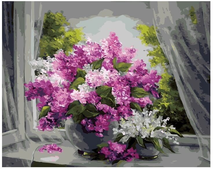 Набор для рисования картины по номерам Букет сирени в дождливый день, арт. BK-GX8592, 40х50см. ***НАЛИЧИЕ УТОЧНЯЙТЕ***