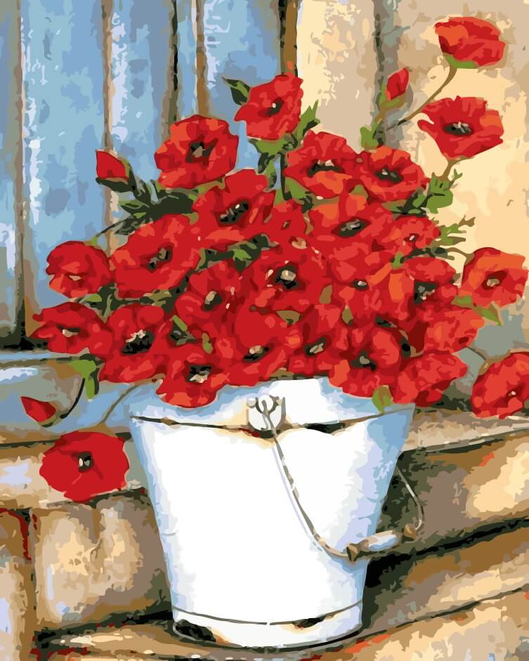 Набор для рисования картины по номерам Ведерко с маками, арт. AS0114, 40х50см. ***НАЛИЧИЕ УТОЧНЯЙТЕ***