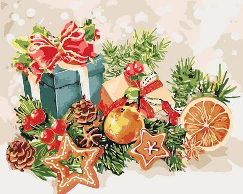 Набор для рисования Дух Рождества, арт. KH5535 (Идейка) содержит: прогрунтованный холст на подрамнике с нанесенной номерной схемой, акриловые краски, кисти, крепеж на стену и инструкцию с фото. Размер 40х50см.