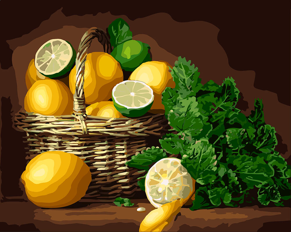 Набор для рисования картины по номерам Корзина лимонов и лаймов, арт. KHO5589, 40х50см. ***НАЛИЧИЕ УТОЧНЯЙТЕ***