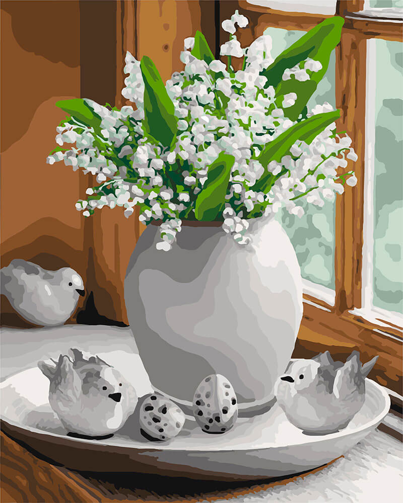 Набор для рисования картины по номерам Ландыш на подоконнике, арт. KHO3077, 40х50см. ***НАЛИЧИЕ УТОЧНЯЙТЕ***