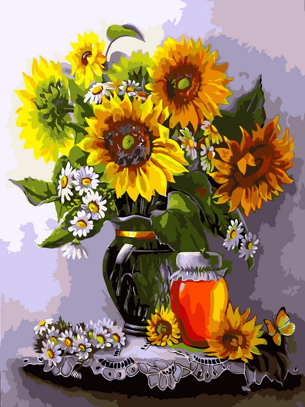 Набор для рисования картины по номерам Мед и подсолнухи, арт. VK027, 30х40см. ***НАЛИЧИЕ УТОЧНЯЙТЕ***