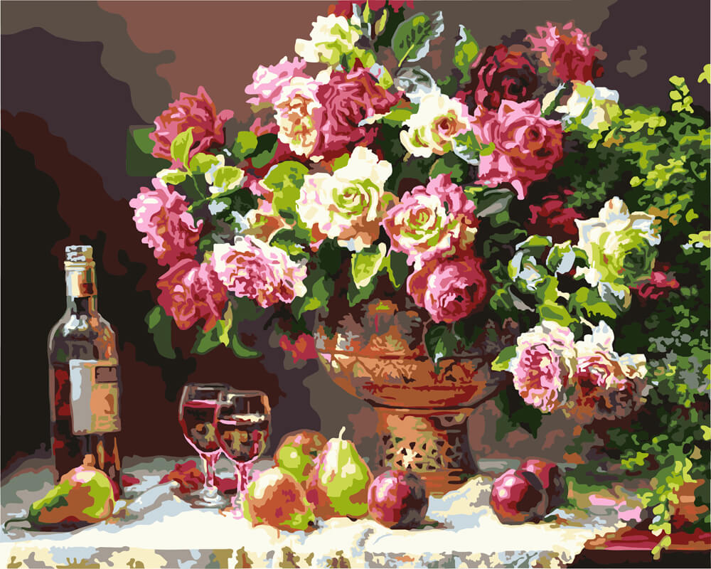Набор для рисования картины по номерам Натюрморт с вином и розами, арт. BK-G278, 40х50см. ***НАЛИЧИЕ УТОЧНЯЙТЕ***