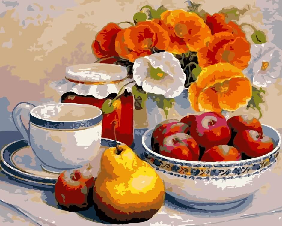 Набор для рисования картины по номерам Натюрморт с маками и фруктами, арт. AS0119, 40х50см. ***НАЛИЧИЕ УТОЧНЯЙТЕ***