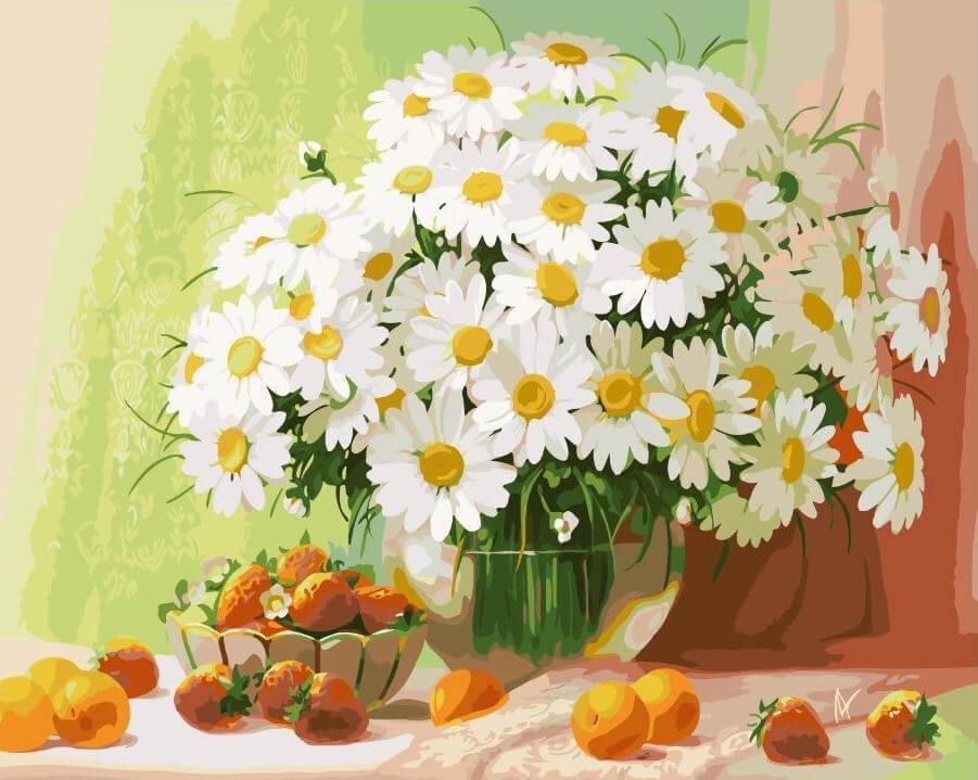 Набор для рисования картины по номерам Натюрморт с ромашками и абрикосами, арт. BK-G320, 40х50см. ***НАЛИЧИЕ УТОЧНЯЙТЕ***