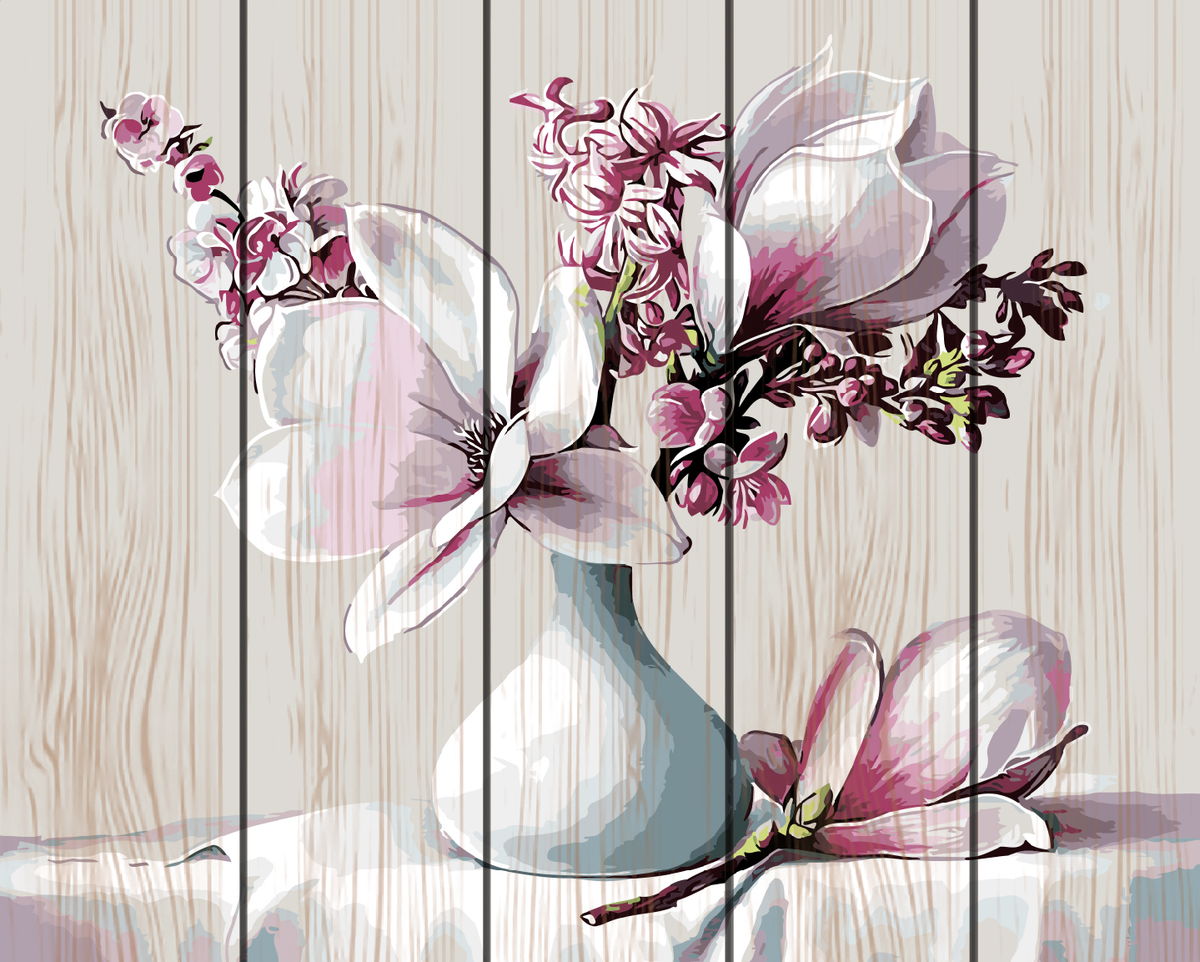 Набор для рисования картины по номерам на дереве Букет магнолий, арт. RA-GT303, 40х50см. ***НАЛИЧИЕ УТОЧНЯЙТЕ***