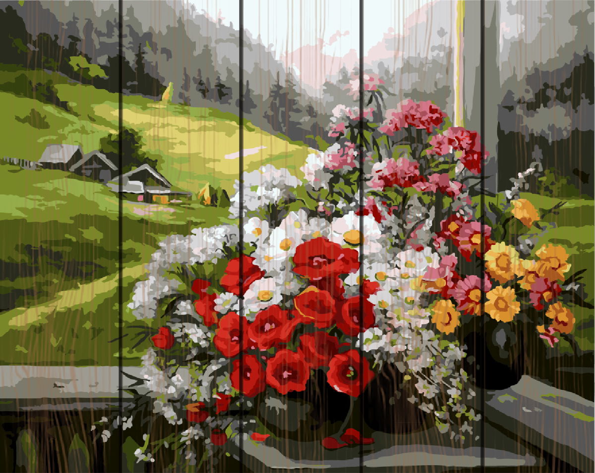 Набор для рисования картины по номерам на дереве Горный букет, арт. RA-GXT9500, 40х50см. ***НАЛИЧИЕ УТОЧНЯЙТЕ***