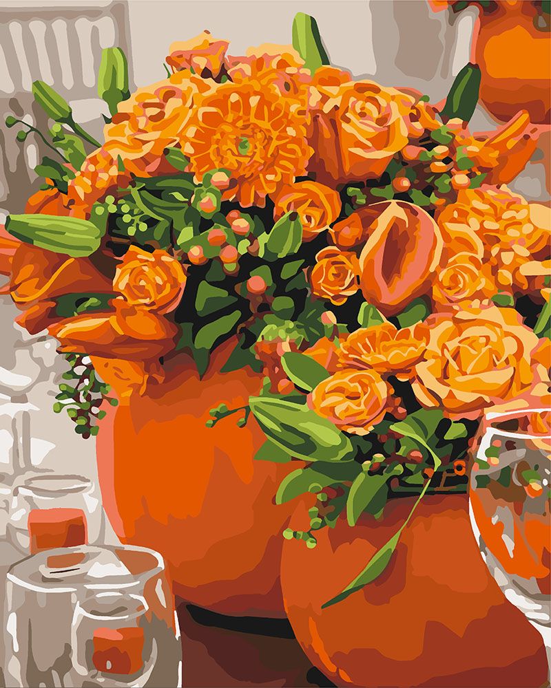Набор для рисования картины по номерам Оранжевые букеты, арт. KHO3066, 40х50см. ***НАЛИЧИЕ УТОЧНЯЙТЕ***
