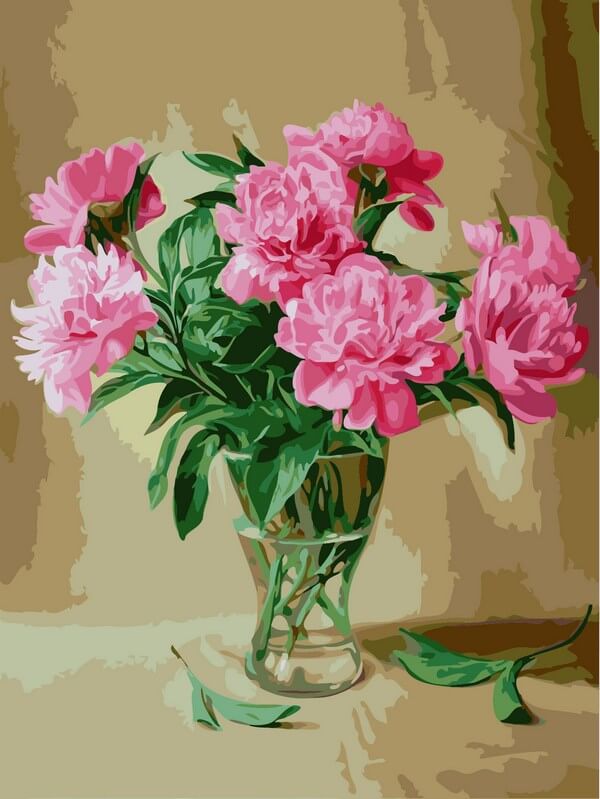 Набор для рисования картины по номерам Пионы в стеклянной вазе, арт. VK020, 30х40см. ***НАЛИЧИЕ УТОЧНЯЙТЕ***