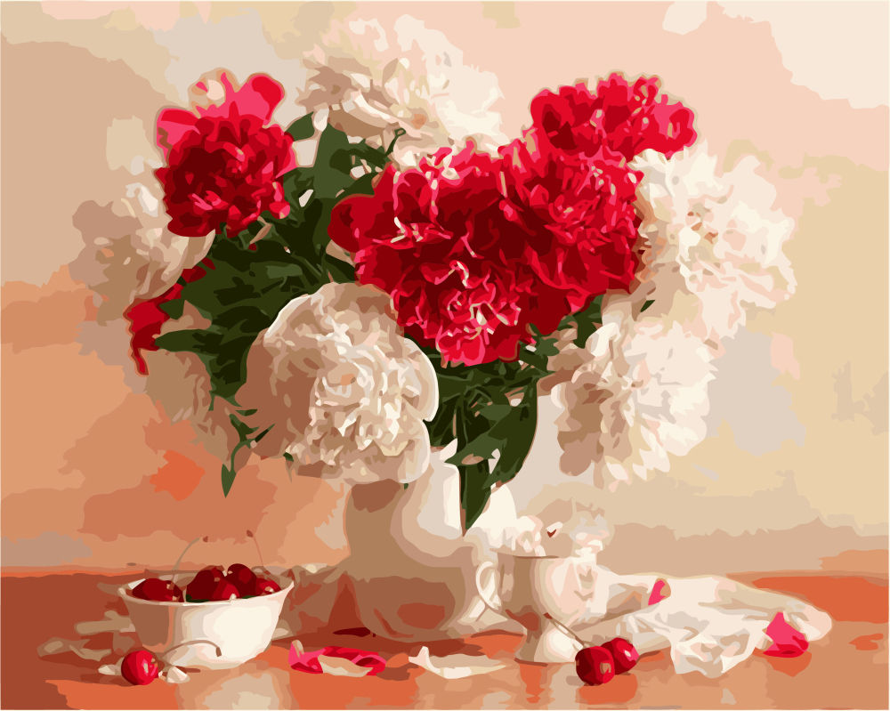 Набор для рисования картины по номерам Пионы и вишни, арт. BRM8082, 40х50см. ***НАЛИЧИЕ УТОЧНЯЙТЕ***