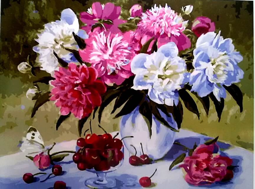 Набор для рисования картины по номерам Пионы и черешни, арт. BK-GX24631, 40х50см. ***НАЛИЧИЕ УТОЧНЯЙТЕ***