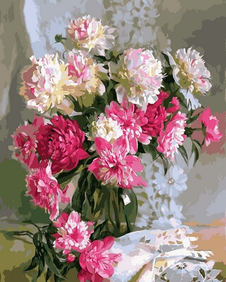 Набор для рисования картины по номерам Пионы на кружевной скатерти, арт. VP682, 40х50см. ***НАЛИЧИЕ УТОЧНЯЙТЕ***
