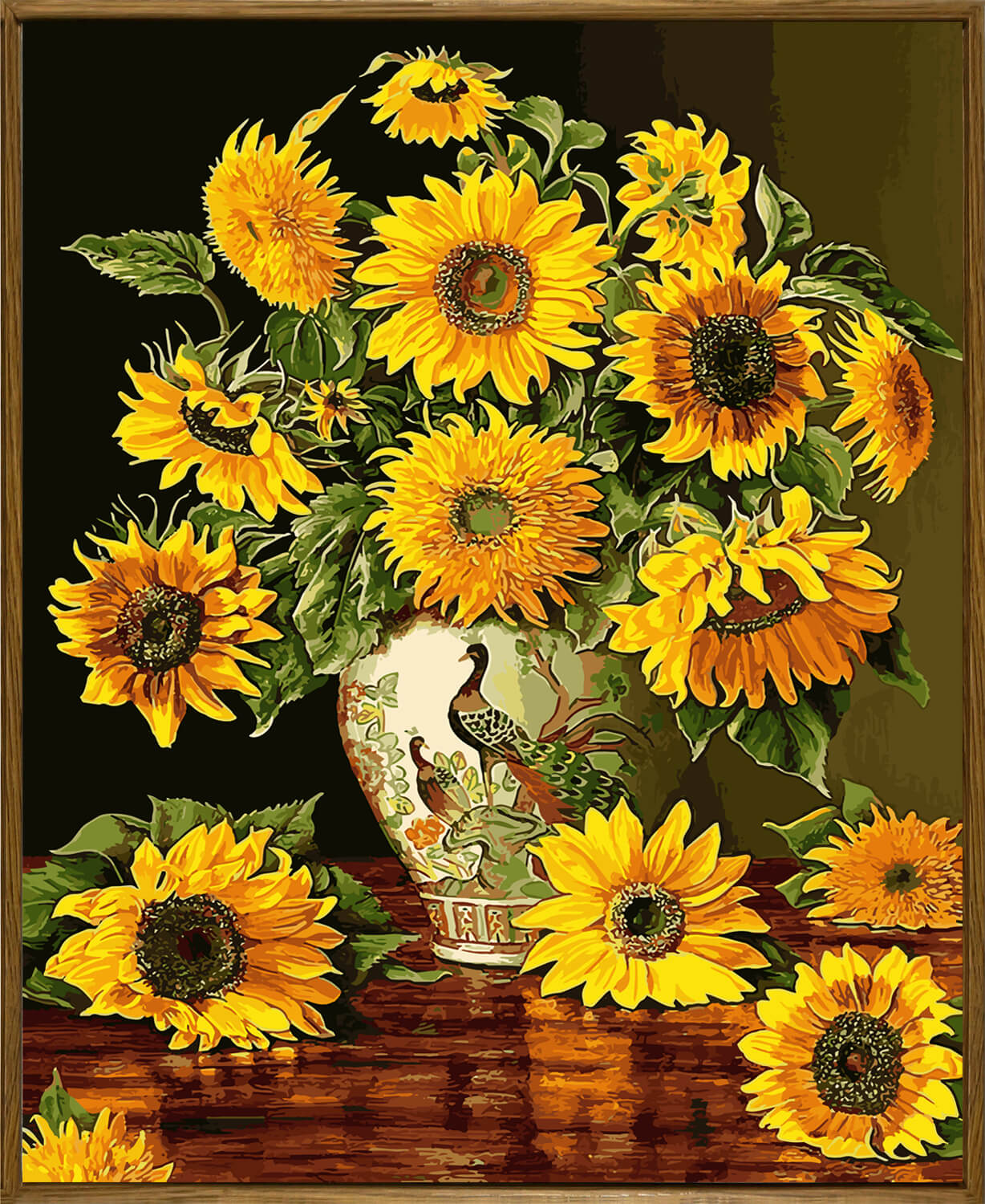 Набор для рисования картины по номерам Подсолнухи в вазе с павлинами, арт. NB946, 40х50см. ***НАЛИЧИЕ УТОЧНЯЙТЕ***
