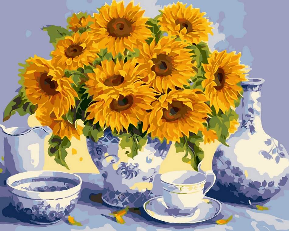 Набор для рисования картины по номерам Подсолнухи и старинный сервиз, арт. AS0004, 40х50см. ***НАЛИЧИЕ УТОЧНЯЙТЕ***