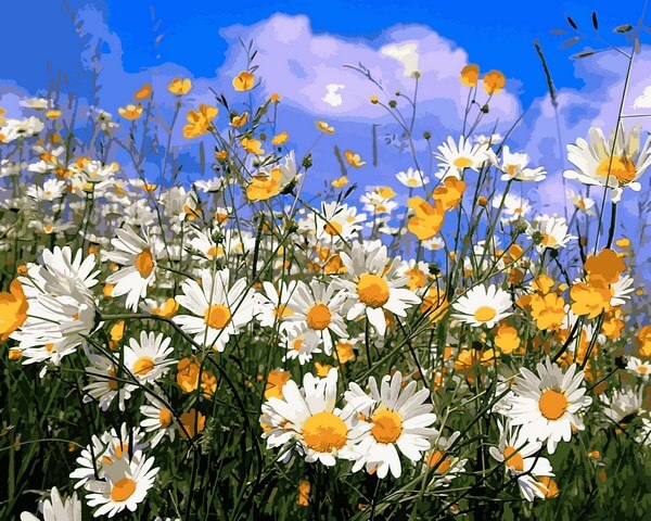 Набор для рисования Поле ромашок, арт. VP1255 (Babylon) содержит: прогрунтованный холст на подрамнике с нанесенной номерной схемой, акриловые краски, кисти, крепеж на стену и инструкцию с фото. Размер 40х50см.