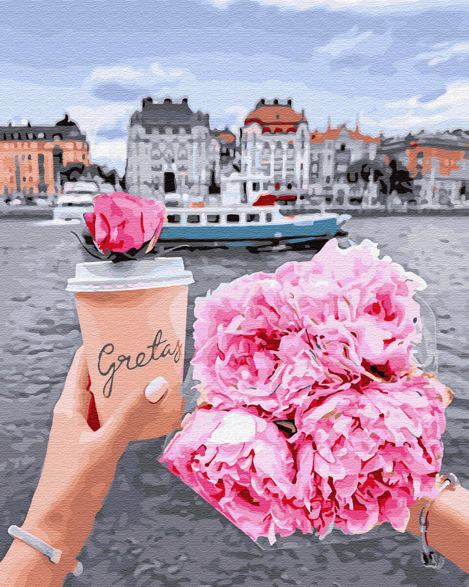 Набор для рисования Прогулка с пионами, арт. BK-GX34168 (Brushme) содержит: прогрунтованный холст на подрамнике с нанесенной номерной схемой, акриловые краски, кисти, крепеж на стену и инструкцию с фото. Размер 40х50см.