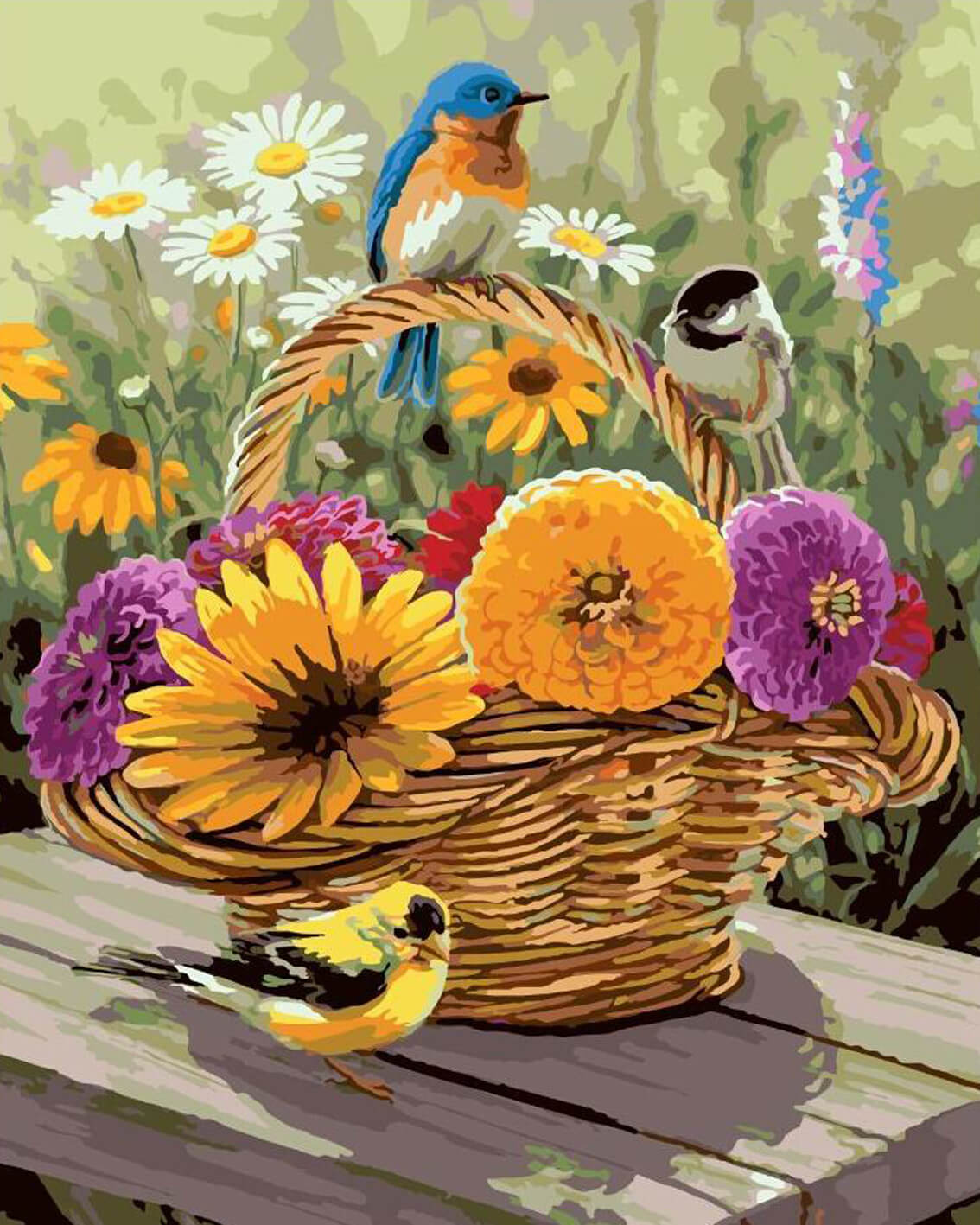 Набор для рисования картины по номерам Птички и корзинка, арт. BK-GX8550, 40х50см. ***НАЛИЧИЕ УТОЧНЯЙТЕ***