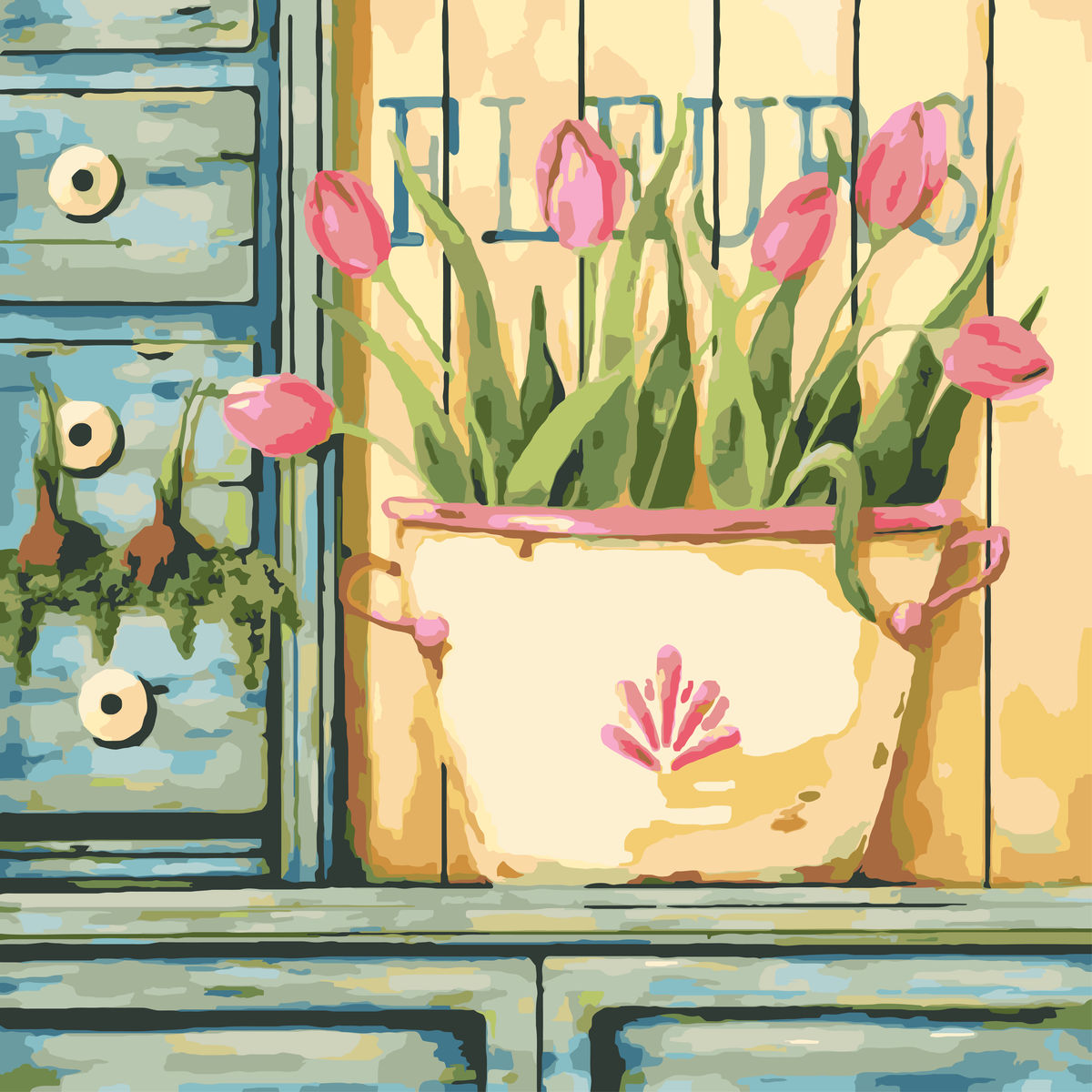 Набор для рисования картины по номерам Розовые тюльпаны, арт. KH2028, 40х40см. ***НАЛИЧИЕ УТОЧНЯЙТЕ***
