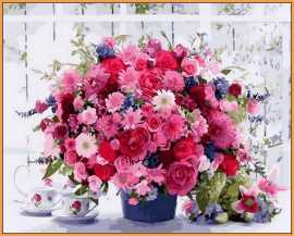 Набор для рисования картины по номерам Розовые хризантемы (в раме), арт. NB1233R, 40х50см. ***НАЛИЧИЕ УТОЧНЯЙТЕ***