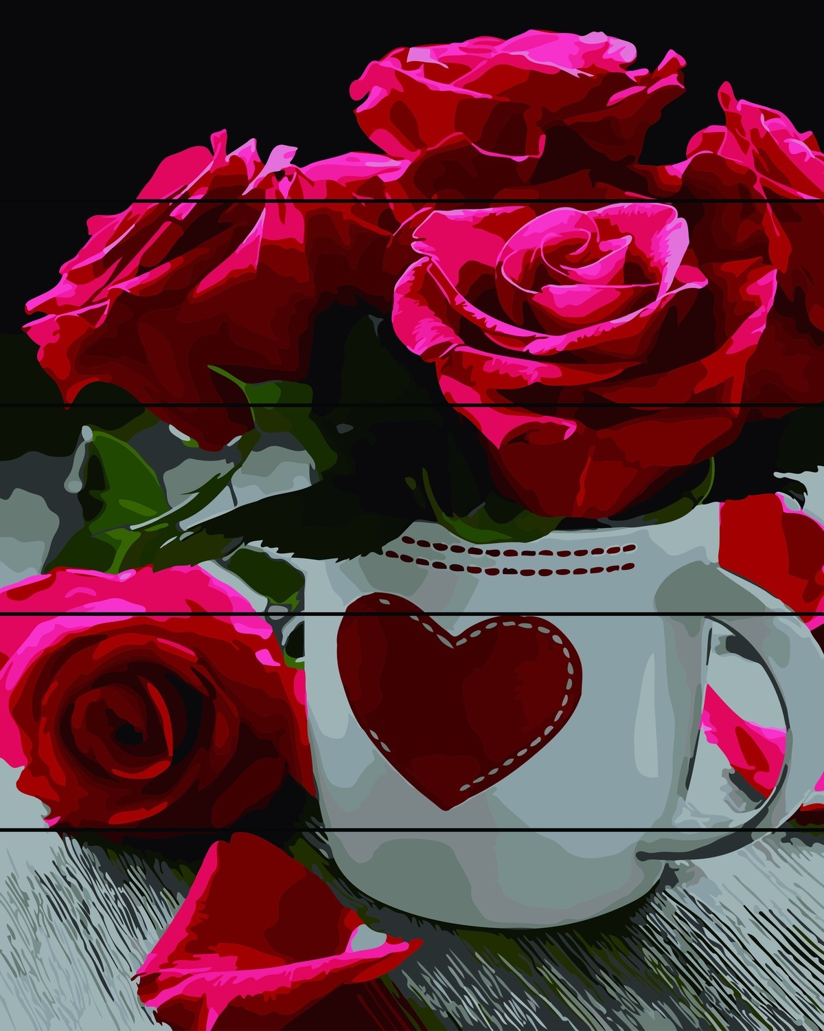 Набор для рисования картины по номерам Розы в чашке, арт. RA-AS0020, 40х50см. ***НАЛИЧИЕ УТОЧНЯЙТЕ***