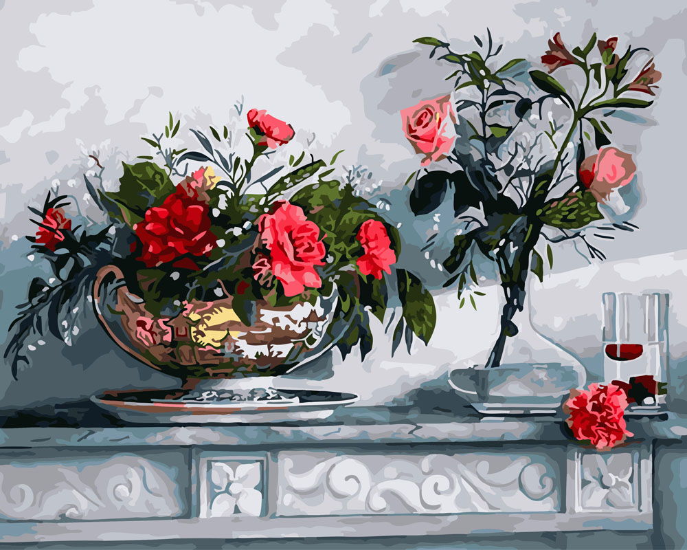Набор для рисования картины по номерам Розы на камине, арт. BK-GX26078, 40х50см. ***НАЛИЧИЕ УТОЧНЯЙТЕ***