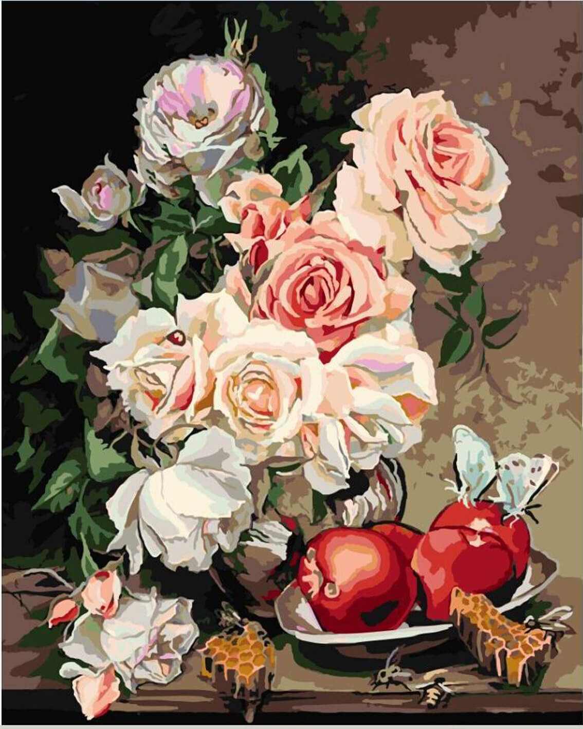 Набор для рисования картины по номерам Розы с яблоками и медовыми сотами, арт. BK-GX9746, 40х50см. ***НАЛИЧИЕ УТОЧНЯЙТЕ***