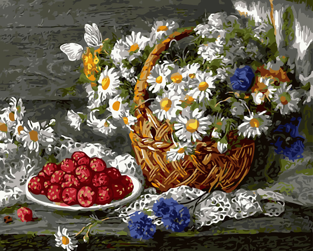 Набор для рисования картины по номерам Ромашки и малина, арт. BK-GX5083, 40х50см. ***НАЛИЧИЕ УТОЧНЯЙТЕ***