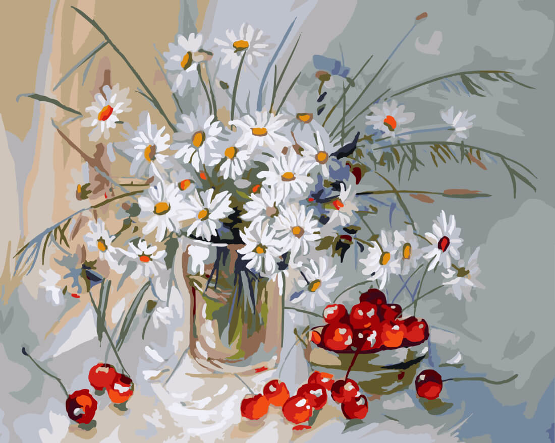 Набор для рисования картины по номерам Ромашки и черешня, арт. BK-GX7840, 40х50см. ***НАЛИЧИЕ УТОЧНЯЙТЕ***