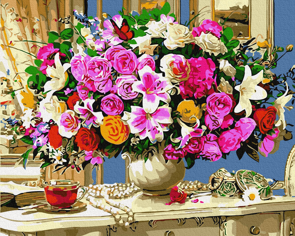 Набор для рисования картины по номерам Роскошный букет на столике, арт. BK-GX34606, 40х50см. ***НАЛИЧИЕ УТОЧНЯЙТЕ***