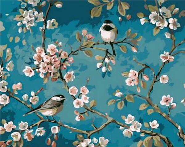 Набор для рисования картины по номерам Синички на яблоне, арт. MR-Q1083, 40х50см. ***НАЛИЧИЕ УТОЧНЯЙТЕ***