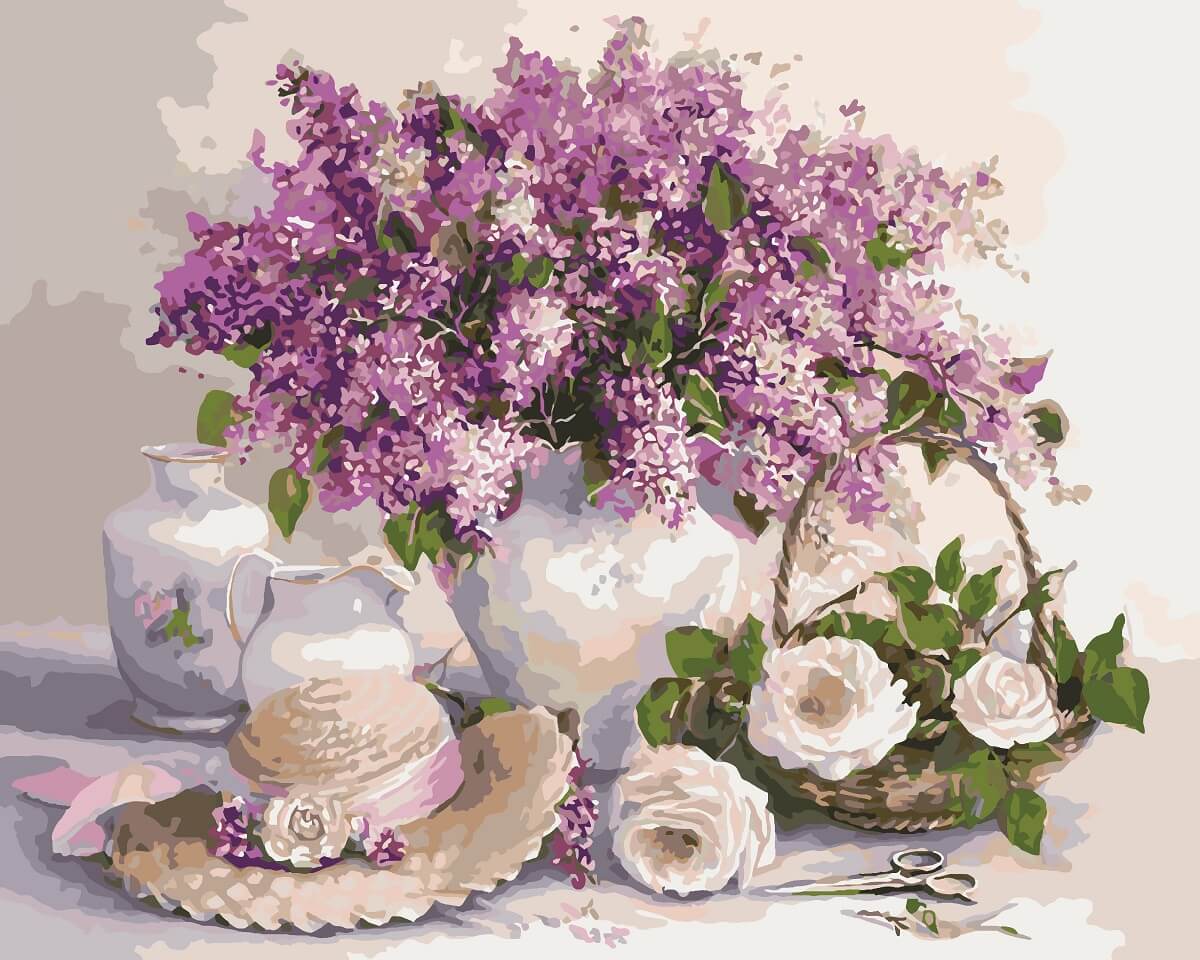 Набор для рисования картины по номерам Сирень и белые розы, арт. KH2230, 40х50см. ***НАЛИЧИЕ УТОЧНЯЙТЕ***