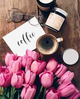 Набор для рисования картины по номерам Тюльпаны к кофе, арт. 12119-AC, 40х50см. ***НАЛИЧИЕ УТОЧНЯЙТЕ***