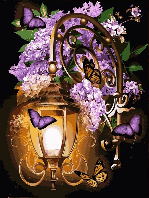 Набор для рисования картины по номерам Фонарь в окружении сирени, арт. VK222, 30х40см. ***НАЛИЧИЕ УТОЧНЯЙТЕ***