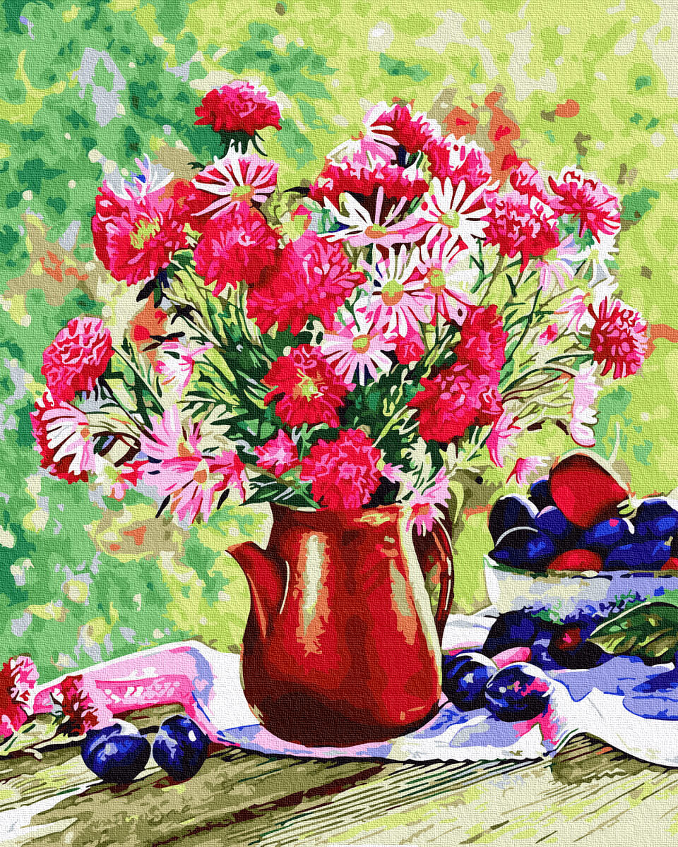 Набор для рисования Цветы и сливы, арт. BK-GX34321 (Rainbow Art) содержит: прогрунтованный холст на подрамнике с нанесенной номерной схемой, акриловые краски, кисти, крепеж на стену и инструкцию с фото. Размер 40х50см.