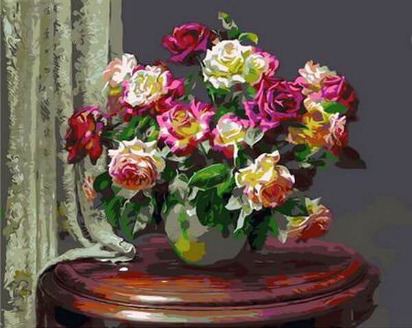 Набор для рисования картины по номерам Чайные розы, арт. MR-Q1001, 40х50см. ***НАЛИЧИЕ УТОЧНЯЙТЕ***