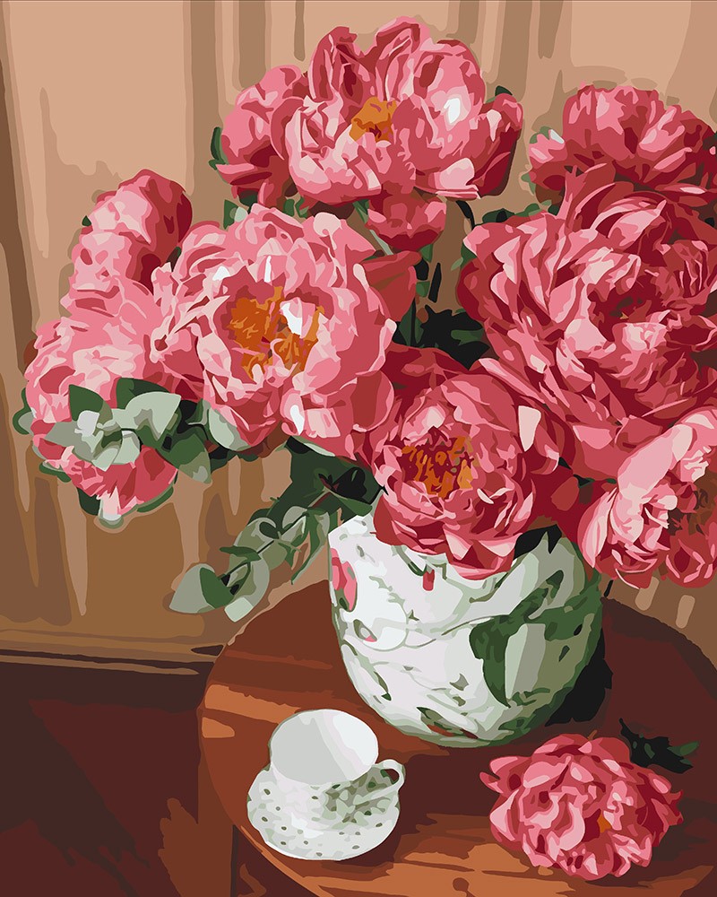 Набор для рисования картины по номерам Чай и букет пионов, арт. KH3048, 40х50см. ***НАЛИЧИЕ УТОЧНЯЙТЕ***