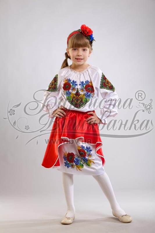 Заготовка детского платья (9-12 лет) под вышивку нитками или бисером ПД008, ТМ Барвиста Вишиванка состоит из отреза ткани 100х100см и двух по 65х37см с нанесенной схемой, проклеенной флизелином. Содержит инструкцию с рекомендованными номерами бисера Preciosa и ниток DMC. Ткань на выбор: домотканное полотно, атлас-коттон (50% х/б, 50% п/э), шелк (100% п/э).