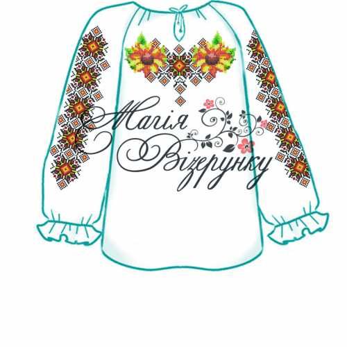 В комплект заготовки детской вышиванки для девочек (4-8 лет) входит 4 отреза домотканного полотна с нанесенным рисунком: 2 рукава, передняя часть и спинка. Комплектуется инструкцией, в которой указано количество бисера и номера ниток мулине DMC.