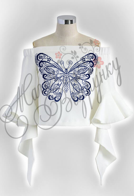 В комплект заготовки женской летней блузки входит 4 отреза габардиновой ткани с нанесенной цветной схемой-орнаментом: два рукава (75х65см), передняя часть и спинка (75х75см). Комплектуется инструкцией с указанием количества бисера и номеров мулине DMC.