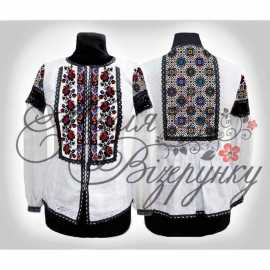 В комплект заготовки модельной женской сорочки под вышивку входит домотканное полотно с нанесенным цветным рисунком-схемой, состоящее из отрезов: два рукава (75х65см), передняя часть (75х75см), спинка (75х65см), кокетка, манжеты, воротничок и инструкция.