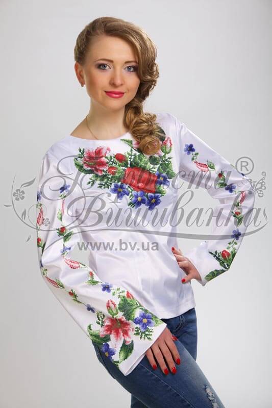 Заготовка женской сорочки БЖ036, ТМ Барвиста Вишиванка состоит из отреза ткани 150х75см и двух по 50х75см с нанесенной схемой, проклеенной флизелином. Содержит инструкцию с рекомендованными номерами бисера Preciosa и ниток DMC. Ткань на выбор: домотканное полотно, атлас-коттон (50% х/б, 50% п/э), шелк (100% п/э). Заготовка вышиванки доступна также в черном и бежевом цвете и на натуральном льне, их наличие и цену уточняйте у менеджера.
