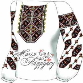 В комплект заготовки женской вышиванки входит 4 отреза домотканного полотна с нанесенной цветной схемой-орнаментом: два рукава (75х65см), передняя часть и спинка (75х75см). Комплектуется инструкцией с указанием количества бисера и номеров мулине DMC.