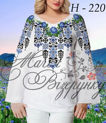 В комплект заготовки женской вышиванки входит 4 отреза домотканного полотна с нанесенной цветной схемой-орнаментом: два рукава (75х65см), передняя часть и спинка (75х75см). Комплектуется инструкцией с указанием количества бисера и номеров мулине DMC.