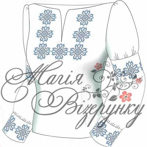 В комплект заготовки женской вышиванки входит 4 отреза домотканного полотна с нанесенной цветной схемой-орнаментом: два рукава (75х65см), передняя часть и спинка (75х75см). Комплектуется инструкцией с указанием количества бисера и номеров мулине DMC.