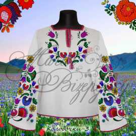 В комплект заготовки сорочки под вышивку счетной гладью входит 4 отреза домотканного полотна с нанесенной цветной схемой-орнаментом: два рукава (75х65см), передняя часть и спинка (75х75см). Комплектуется инструкцией с указанием номеров мулине DMC.