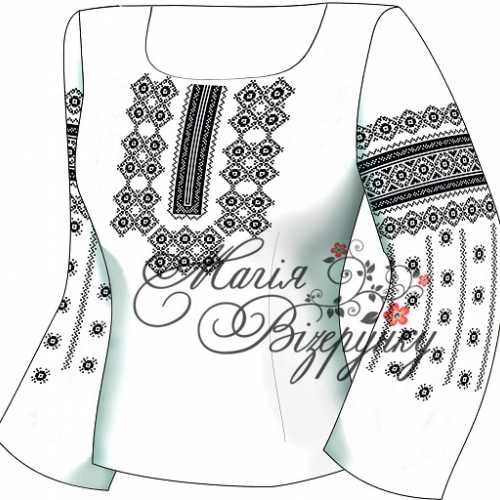 В комплект заготовки женской вышиванки входит 4 отреза домотканного полотна с нанесенной цветной схемой-орнаментом: два рукава (75х65см), передняя часть и спинка (75х75см). Комплектуется инструкцией с указанием количества бисера и номеров мулине DMC.